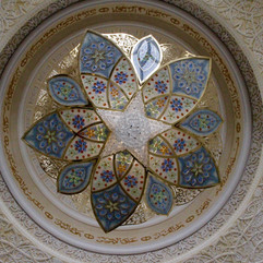Une fois au sein de la Mosquée, l'émerveillement continue. Les motifs de fleurs et de végétaux, figuratifs ou stylisés, sont partout. A commencer par l'immense cour intérieure (que l'on ne pouvait parcourir qu'en bordure et sur une allée centrale délimitée), sur les piliers, sur les façades et sur les portes, mais aussi sur l'immense tapis de plus de 5500 m2 recomposé dans la salle de prières principale... A mi-parcours, il a fallu ôter nos chaussures... J'ai marché pieds nus sur ses étendues de marbre en provenance d'Asie et d'Italie, déambulé entre les 1000 colonnes incrustées de pierres semi-précieuses et de nacre. J'ai regardé en contre-plongée les lustres immenses de cristal accrochés aux dômes de plusieurs tonnes ; j'ai écouté attentivement un musulman expliqué, avec l'enthousiasme du partage, les heures et les postures de prières. On ne peut qu'être admiratif en pensant que des milliers d'âmes, de toutes origines, se sont penchées des heures et des années durant pour réaliser un tel ouvrage, à l'unisson. En définitive, même en arrivant là "touriste", on en repart forcément "voyageur". Cliquez ici pour plus de données techniques sur la Mosquée