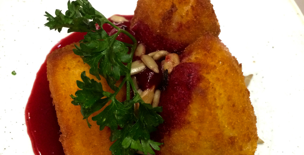 C'est au Lonja de tapas de la rue Jaume I, en bordure du barrio gòtic et du barrio culturel El Born que nous nous arrêtons pour diner. La décoration est à la fois chaleureuse et moderne. Le noir ardoise domine et répond aux pans de mur de grandes pierres beiges. La lumière chaude et tamisée sous le plafond haut de type industriel nous invite à tester les vins espagnols et des mojitos revisités au kiwi et à la mangue. J'ai une pensée particulière pour mon amie Eva... Les tapas inventifs associent des saveurs originales inattendues pour gourmets gourmands. C'est un véritable feu d'artifices culinaire ! Outre les classiques patatas bravas dont les sauces piquante et à l'ail marquent déjà la différence, nous nous délectons d'un Camembert fregit amb salsa de fruits vermells - camembert frit au coulis de fruits rouges – et d'un foie gras a la plancha sauce mangue et poire sur lit de pain d'épice, agrémenté de pignons légèrement grillés. Je suis épatée par la finesse des Pebrots de Padró fregits amb sal maldon ( Poivrons verts semi-piquants au gros sel) qui se laissent avaler comme des friandises. Les goûts se marient à merveille et la créativité de la carte va jusque dans le moelleux au chocolat noir et sa tranche de pain grillée à l'huile d'olive et au sel...